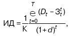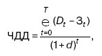 где Dt – доходы по проекту в t-м году; 3t – затраты по проекту в t-м году; d – ставка дисконта; Т – срок реализации прокта. Инновационный проект считается эффективным при ЧДД > 0.