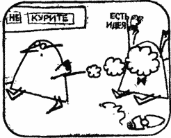 Хотя наш рассказ-загадка в картинках может показаться тривиальным, он показывает, что пробел как элемент алфавита имеет первостепенное значение для правильного понимания предложений. Пробелы между словами играют такую же роль, как скобки, пробелы и т. п. в математических выражениях. Смысл математического выражения нередко можно сильно изменить, «передвинув» одну-единственную скобку подобно тому, как сдвиг пробела почти до неузнаваемости изменил привычный призыв «НЕ КУРИТЕ».