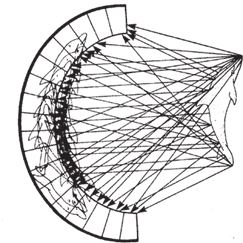 Рис. 5.27. Умная схема “подключения” омматидиев в суперпозиционном фасеточном глазу.