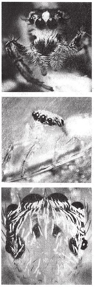 Для зрения лучше иметь большую сетчатку, чем маленькую. Она вмещает больше фоторецепторов, и можно разглядеть больше мелких деталей. Но за все надо платить. Вспомните сюрреалистическую улитку с рис. 5.1. И все?таки некоторые мелкие создания могут позволить себе более широкую сетчатку. Майкл Лэнд, профессор Университета графства Суссекс, в послужном списке которого множество ярких и незаурядных открытий, касающихся глаз, и у которого я почерпнул массу сведений из этой области науки, нашел великолепный образчик – паука-скакуна[11]. У пауков глаза не фасеточные, вот и пауки-скакуны используют глаз камерного типа в высшей степени рационально (рис. 5.17). Лэнд обнаружил весьма оригинальную сетчатку. Не широкий экран для проекции полномасштабной картинки, а длинную вертикальную полосу, узкую и не пригодную для восприятия качественного изображения. Однако паук с удивительной изобретательностью компенсирует минусы узкой сетчатки. Непрерывно перемещая сетчатку, он “сканирует” зону возможной проекции изображения. Таким образом, его “полезная” сетчатка намного больше реальной – похожий принцип используют пауки-боладоры, когда раскручивают свою единственную нить и увеличивают область захвата до площади обычной круговой паутины. Если сетчатка паука-скакуна зафиксирует достойный внимания объект – например, летящую муху или другого паука-скакуна, – “сканер” локализуется на прилегающем к цели пространстве. Это создает динамический эквивалент центральной ямки сетчатки. Находчивые пауки-скакуны оккупировали для своего глаза с хрусталиком невысокий, но вполне респектабельный пик в своем районе горы Невероятности.