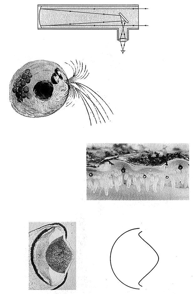 Это пример эволюции фасеточного глаза до камерного – кстати, очередной аргумент в пользу независимого развития глаз у разных животных. Но откуда изначально мог бы взяться фасеточный глаз? Какие находки ждут нас на нижних уровнях этого обособленного пика горы Невероятности?