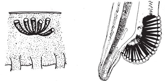 Рис. 5.24. Примитивные фасеточные глаза двух видов червей.