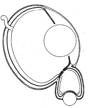 Рис. 5.20 (а). Повтор рис. 5.6; (b) вывернутая камера-чаша. Принцип устройства аппозиционного фасеточного глаза.