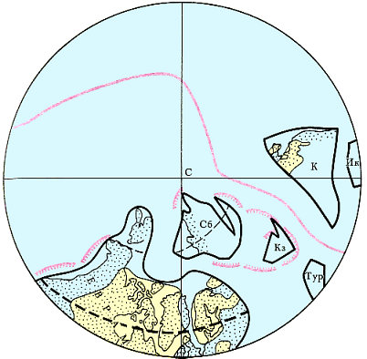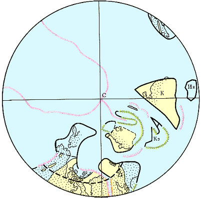 Во второй половине каменноугольного периода на Земле произошли значительные события, вызванные крупными тектоническими подвижками и перемещениями литосферных плит. В результате на больших пространствах временно прекратилось осадкообразование, изменился состав растительного и животного мира и ограничивалась связь полярных морских бассейнов с экваториальными. Это, а также сильное, почти двукратное снижение содержания углекислого газа в атмосфере, израсходованного на фотосинтез, привело к наступлению похолодания. Вначале в полярных областях похолодание не было столь значительным, но появление континентальной суши с ее высокими значениями отражательной способности земной поверхности вблизи Южного полюса вызвало появление горных, а затем и покровных ледников. Следовательно, суша на Южном полюсе сыграла роль глобального холодильника. В северном полярном бассейне температура воды понизилась, так как океанические воды стали плохо прогреваться и уменьшился приток вод из теплых, экваториальных бассейнов. Вероятно, что древний северный полярный бассейн, как и существующий ныне Северный Ледовитый океан, на какое-то время покрывался льдом.