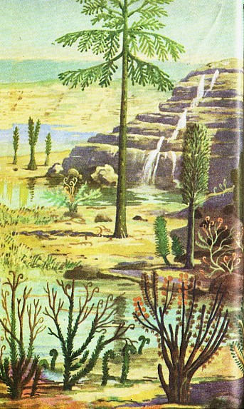 Изменения природных условий сказались на эволюции растительного покрова и наземных позвоночных. Жизнедеятельность наземных организмов протекала в более экстремальных условиях, и они больше, чем морские формы, были подвержены действию перепада температур и влажности.