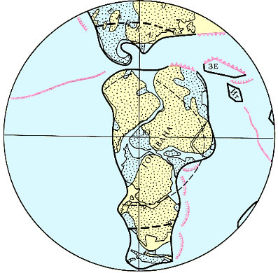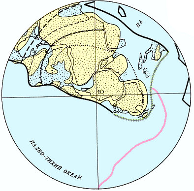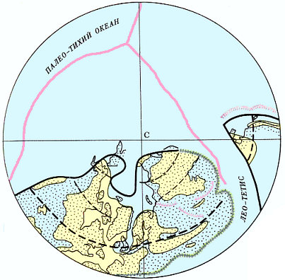 В течение ранней перми Гондвана, располагавшаяся в южном околополярном районе, переместилась в северо-западном направлении и соединилась с Еврамерикой. Последняя в это время находилась в приэкваториальной области. Многие микроконтиненты причленились к вновь созданному суперконтиненту Пангея. Только Китайский континент был изолирован и отделялся от Пангеи океаном палео-Тетис.
