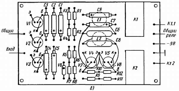 Рис. 363. Плата приемника с дополнительными селективными электронными реле:
