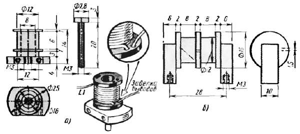 Рис. 355. Катушка L1 и каркас катушек L2 и L3 задающего генератора
