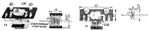 Катушки L4 и L5 (рис. 356) бескаркасные, причем катушка L4 имеет пластинки, скрепляющие витки.