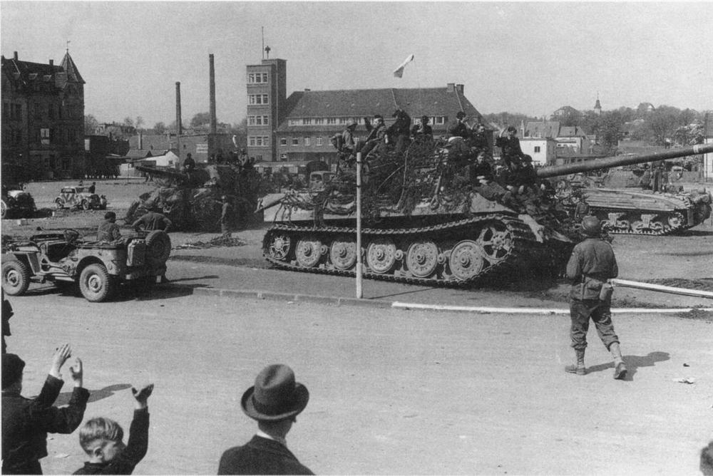 Остатки 512 тяжелого истребительно-противотанкового батальона сдаются американским войскам. Весна 1945 г.