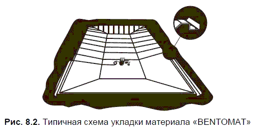 Фирма «СЕТСО» выпускает широкий ассортимент бентонитовых материалов типа «BENTOMAT», позволяющий выбрать наиболее подходящий материал для конкретного объекта с учетом гидрогеологических условий и состава фильтрата. Размеры мата 5?40 м (рис. 8.2).