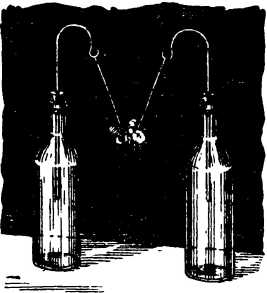 Сделайте две фигурки паука и мухи из тонкой папиросной бумаги. Подвесьте их к электрическим маятникам вместо папиросных гильз. Наэлектризуйте паука положительным, а муху отрицательным электричеством и медленно сближайте их. Вы увидите, как «хищный паук» жадно набросится на муху (рис. 53).