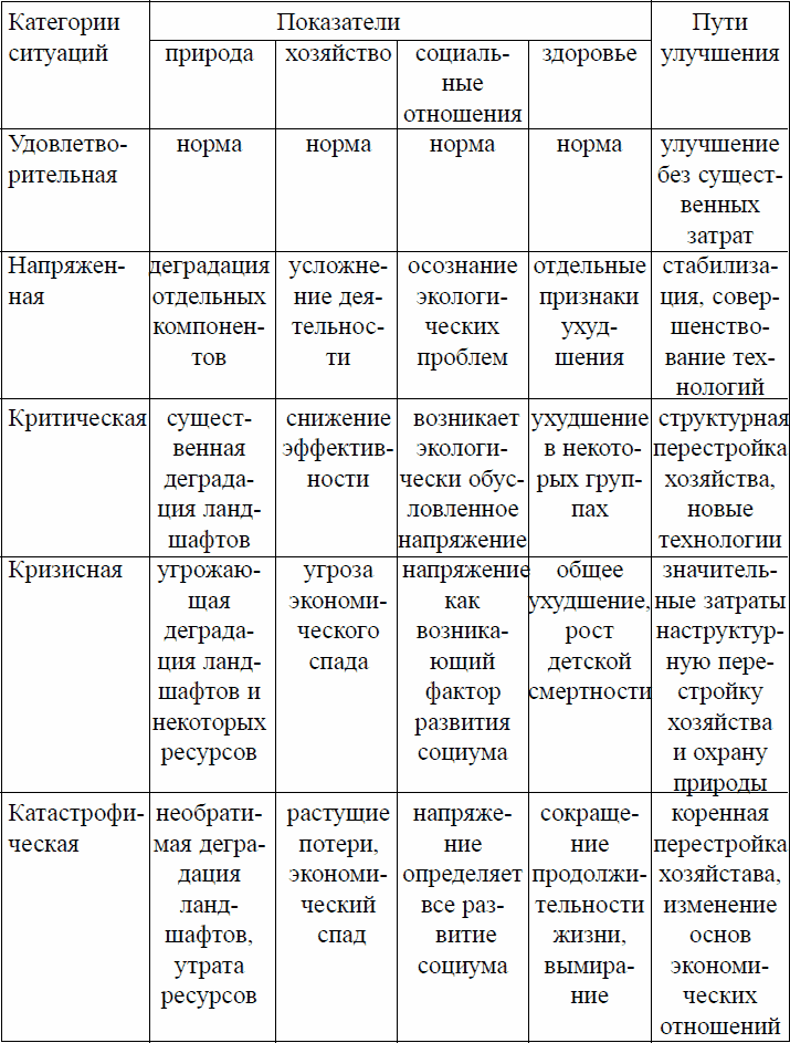 ТАБЛИЦА 3. Обобщенная типология экологических ситуаций (по Глазовский, Кочуров, Коронкевич и др., 1991)[6]