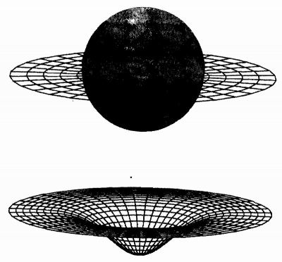 Рис. 18. Диаграмма вложения, которая помогает визуально представить кривизну пространства, создаваемую массивным сферическим телом. Прогибание поверхности показывает пространственное отношение между точками, лежащими на поперечном сечении плотной сферы