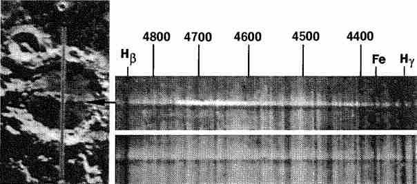 Рис. 2.29. Спектрограммы кратера Альфонс во время предполагаемого события (верхняя) и после него (нижняя).