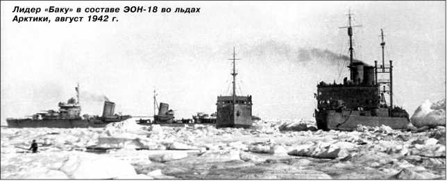 Лидер «Баку» в составе ЭОН-18 во льдах Арктики, август 1942 г.