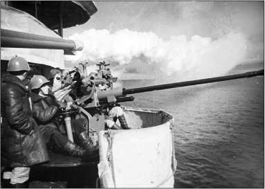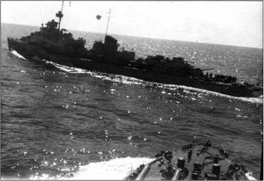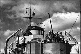 За это время эсминец и эскортируемые суда неоднократно подвергались воздушным атакам, причем 10 самолетам удалось сбросить бомбы, которые, к счастью, не причинили повреждений.