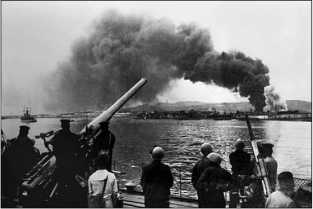 «Сообразительный» ведет огонь по противнику, Севастополь, 1942 г.