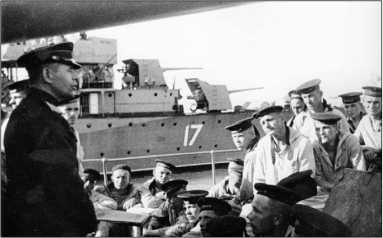 Построение экипажа эсминца «Сообразительный» перед вручением гвардейского военно-морского флага.