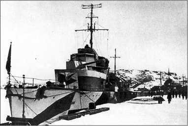 Лидер «Баку» вскоре после прибытия на Северный флот. Хорошо видна «шуба», которой корабль был оснащен во время следования Северным морским путем.