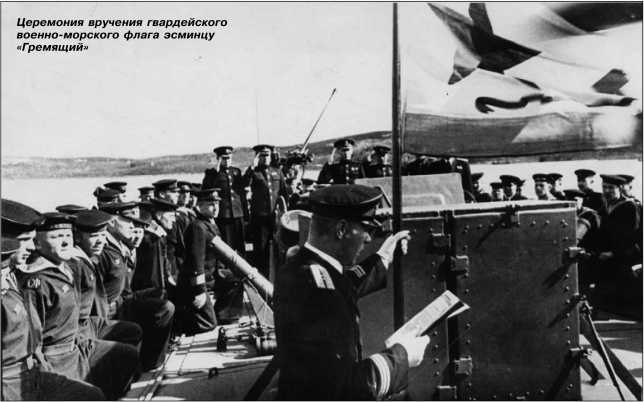 13 сентября гвардейский флаг эсминцу вручил командующий флотом вице-адмирал В.Ф. Трибуц.