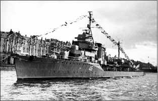С 9 июня 1944 г. до 6 апреля 1945 г. эсминец стоял в ремонте в Росте.