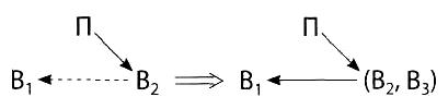 Здесь В1 — изделие, В2 — инструмент, В, — добавка; скобками обозначена внутренняя комплексная связь (внешняя комплексная связь обозначается без скобок).