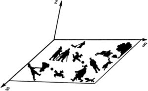 У двумерных воображаемых существ, «плоскатиков», возможностей значительно больше. Они уже могут перемещаться в двух измерениях, в их мире помимо длины есть еще и ширина. Но они точно так же не способны выйти в третье измерение, как и существа-точки не могут «выпрыгнуть» за пределы своей прямой линии. Одномерные и двумерные обитатели в принципе могут прийти к теоретическому заключению о возможности существования большего числа измерений, но путь в следующее измерение для них закрыт.