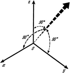 Однако выясним сперва, что вообще представляет собой четырехмерное пространство. В трехмерном пространстве существуют три взаимно перпендикулярных «основных» измерения — «длина», «ширина» и «высота» (три взаимно перпендикулярных направления осей координат). Если бы к этим трем направлениям можно было добавить четвертое, также перпендикулярное к каждому из них, то пространство имело бы четыре измерения, было бы четырехмерным.