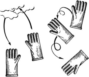 В трехмерном пространстве подобной операции соответствовала бы, например, такая. Можно ли перчатку, предназначенную для правой руки, путем одних только перемещений в пространстве (т. е. не выворачивая наизнанку) превратить в перчатку для левой руки? Каждый легко может убедиться в том, что подобная операция неосуществима. Однако при наличии четырехмерного пространства этого можно было бы достичь так же просто, как и в случае с циферблатом.