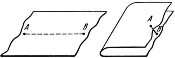 Вернемся снова к двумерному плоскому миру. Хотя его обитатели и не могут выходить за пределы плоскости, все же, благодаря наличию внешнего трехмерного мира, некоторые явления, в принципе, могут здесь протекать с выходом в третье измерение. Это обстоятельство в ряде случаев делает возможным такие процессы, которые в самом по себе двумерном мире не могли бы происходить.