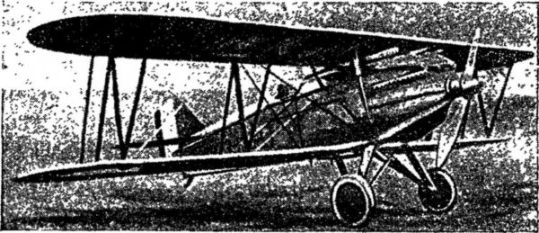 Рис. 22. Современный двухместный военный самолет. Мотор — 500 лош. сил. Пулеметы на снимке не видны.