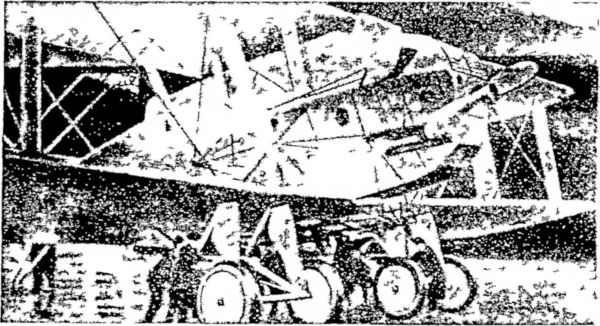Самолет разведывательного типа (рис. 25) — обычно двухместная мощная машина, вооружен пулеметами и оборудован аэрофотоаппаратом для фотографирования позиций противника и радиотелеграфом (иногда радиотелефоном).