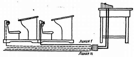 Рис. 45. Схема использования прибора для контроля за правильной осанкой в классе
