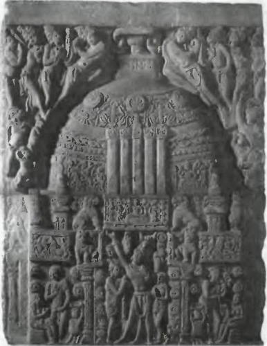 Ступа — это древнеиндийское мемориальное культовое сооружение. На ограде; возможно, изображена сама эта ступа.