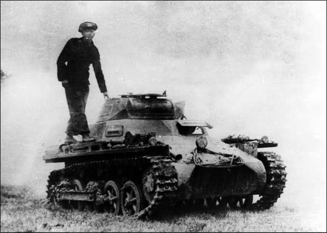 Вид сверху на Pz.I Ausf.A. Хорошо видны сетчатое ограждение глушителя и открытый посадочный люк механика-водителя.