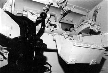 Напротив сиденья находилась приборная панель механика-водителя с датчиком температуры масла, тахометром, проградуированным от 0 до 3000 об/мин с опасной зоной выше 2500 об/мин, и спидометром со шкалой от 0 до 50 км/ч. Максимальные скорости, которые были рекомендованы экипажу: на первой передаче — не более 5 км/ч, на второй — 11, на третьей — 20, на четвертой — 32 и на пятой — 42 км/ч.