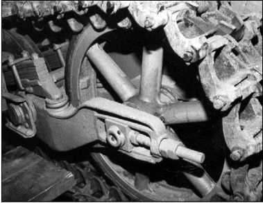 Ленивец Pz.I Ausf.A. Хорошо видны балансир ленивца, рессора подвески и винтовой механизм натяжения гусеницы.