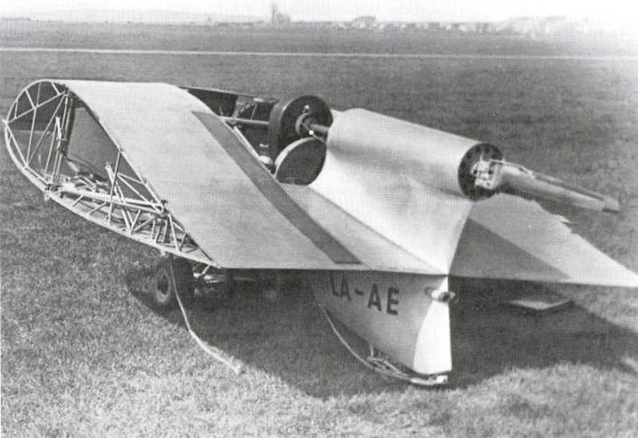 Желание конструкторов создать совершенный в отношении аэродинамики самолет привело к появлению схемы "летающее крыло". Как уже рассказывалось, первые летательные аппараты такой схемы построил в середине 20-х годов Б.И.Черановский. Позднее над проектами "летающего крыла" работали А.Аиппиш и А.Зольденхоф в Германии, А.И.Путилов и К.А.Калинин в СССР, Р.Кокс в Англии, К.Снайдер в США. Эти проекты так и остались на бумаге, а создатель первых "летающих крыльев" Черановский занялся конструированием легкомоторных "бесхвосток" с фюзеляжем и вертикальным оперением.