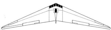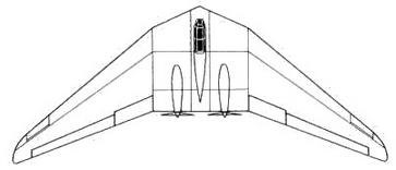 1. Этот недостаток типичен для всех "летающих крыльев" без вертикальных килей: не имея выступающих вверх частей, аппарат при крене начинает беспрепятственно скользить в сторону опущенного крыла.