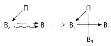Вещество В, может быть введено в систему извне в готовом виде или получено (действием П1 или П2) из имеющихся веществ. В частности, В, может быть «пустотой», пузырьками, пеной и т. д.