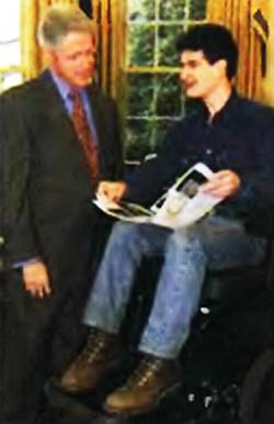 Но что же это за хитроумное изобретение? В Интернете нам удалось разыскать фото, на котором сам Кэмен демонстрирует его теперь уже бывшему президенту США Биллу Клинтону. Как видите, оно представляет собой нечто вроде инвалидного кресла на колесиках.