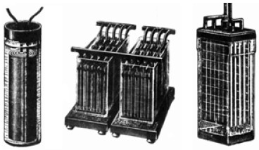 Первые электрические аккумуляторы Гастона Планте имели очень незначительную емкость, то есть запасали совсем немного электричества. Но соединив несколько банок последовательно, напряжение батареи можно было увеличить, а при параллельном их включении увеличивалась емкость. При этом ток прибора оказывался тем сильнее, чем большая поверхность пластин соприкасалась с раствором электролита.