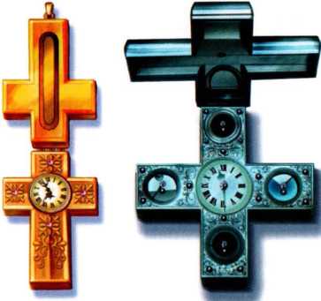 А уж какой только формы их не делали: в виде музыкальных инструментов и фруктов, сердец и раковин, пистолетов и крестов, даже в форме человеческого черепа с циферблатом на лбу.