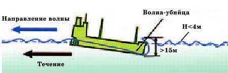 Встреча с одиночной волной в открытом океане грозит гибелью даже крупному судну.