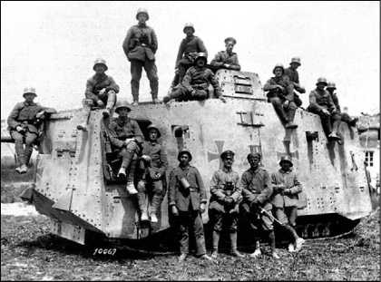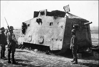 Австралийские пехотинцы осматривают захваченный танк A7V Mephisto. Сейчас этот единственный сохранившийся немецкий танк периода Первой мировой войны демонстрируется в музее г. Брисбен (Австралия).