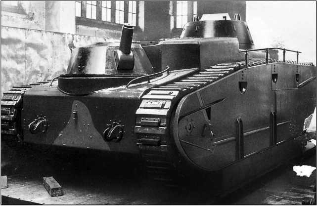 Основное вооружение — 57-мм пушка — размещалось во вращающейся цилиндрической башне с командирским куполом. Кроме того, два пулемета были установлены в передней и задней малых башнях. Двигатель мощностью 180 л.с. должен был обеспечить машине массой 20 т скорость 16 км/ч. Оригинальным решением было среднее расположение ведущего колеса — оно входило в зацепление с верхней ветвью гусеницы и защищалось броней. В октябре 1918 года было принято решение об изготовлении двух опытных образцов, но выполнить его не удалось, проект так и остался нереализованным.