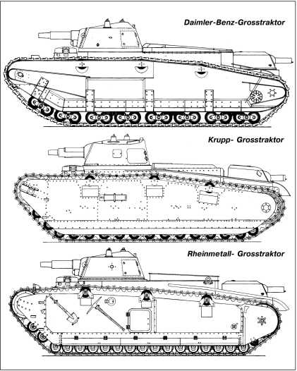 Следует подчеркнуть, что хотя вышеперечисленные образцы и были единственными, изготовленными в металле, их созданием дело не ограничилось. В течение всего 1918 года в Германии появлялись все новые и новые проекты как тяжелых, так и легких танков.