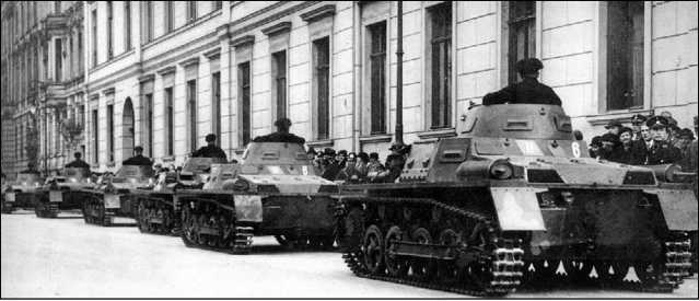 Легкие танки Pz.I Ausf.A во время одного из парадов, часто проводившихся в Германии в 1930-е годы.