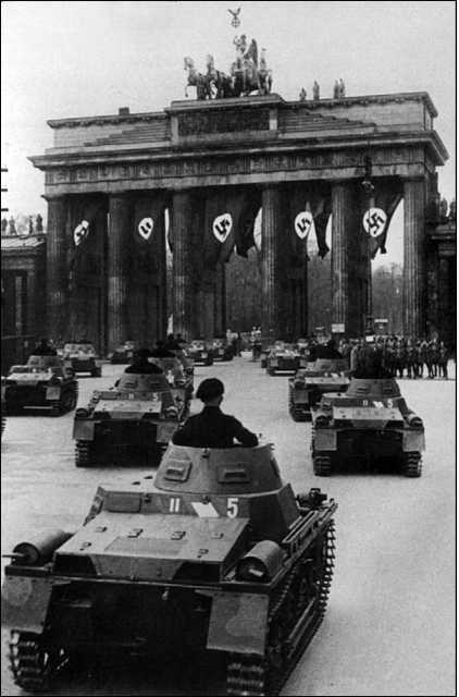 Танки Pz.I Ausf.A из состава 5-го танкового полка Вермахта проходят через Бранденбургские ворота.